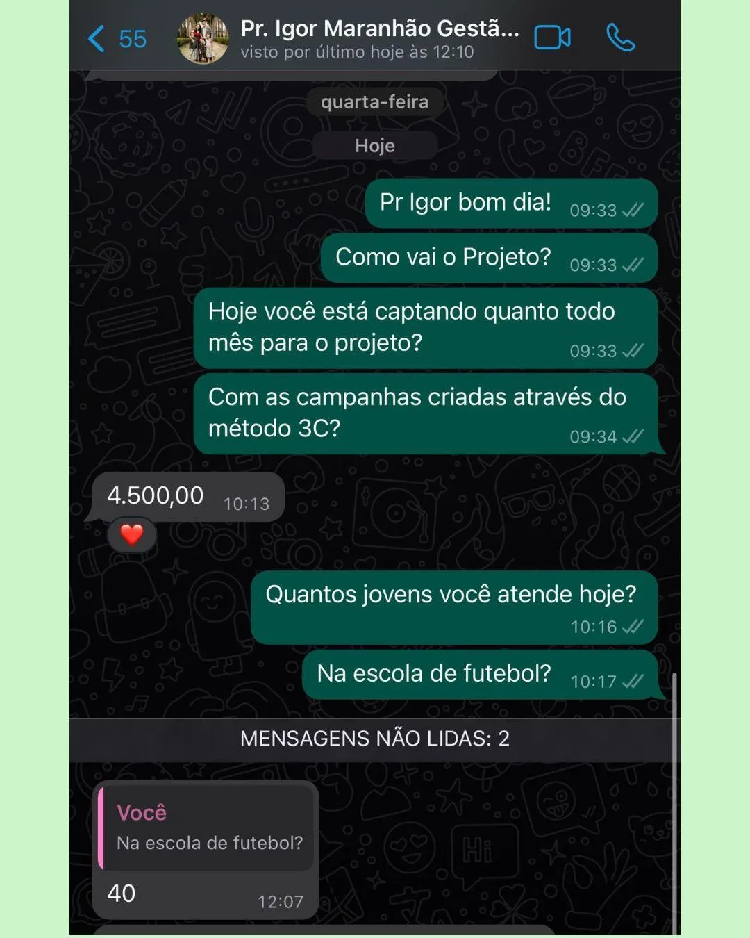 Veja o resultado de líderes cristãos de projetos sociais, pastores, missionários que aplicaram o MÉTODO DA APLICAÇÃO SEGURA e superaram a insegurança ao se comunicar com apoiadores — conquistando uma renda estável, parcerias estratégicas e apoio contínuo para suas causas.
